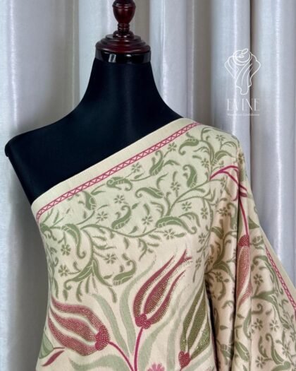 China Floral Stone Work Party Shawl Off White