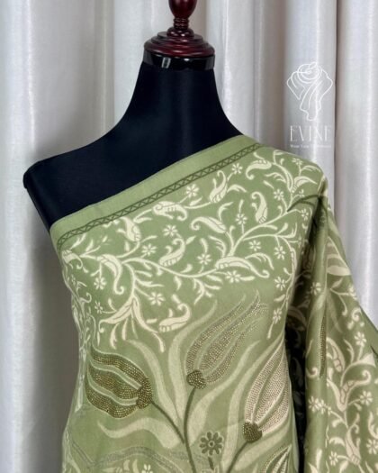 China Floral Stone Work Party Shawl Olive Green